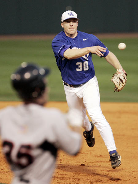 UK's second baseman turns the double play. Thanks to ukathletics for the photo.